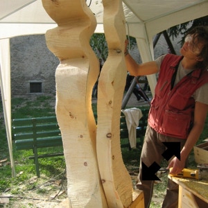 Il legno è il materiale che più mi stimola, ma amo usare anche altre tecniche come il gesso o il cemento. Attraverso la materia cerco un ponte, il dialogo tra i due modi di fare arte, nel tentativo di rendere, appunto, tangibile l’impalpabile.”