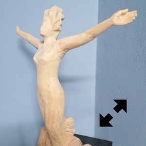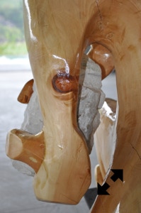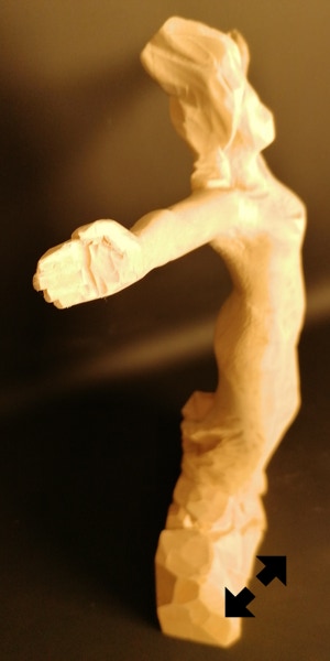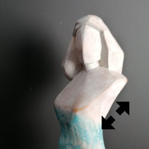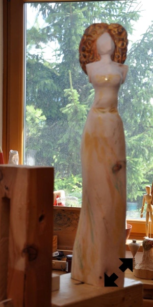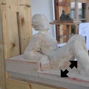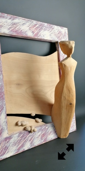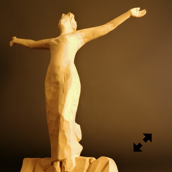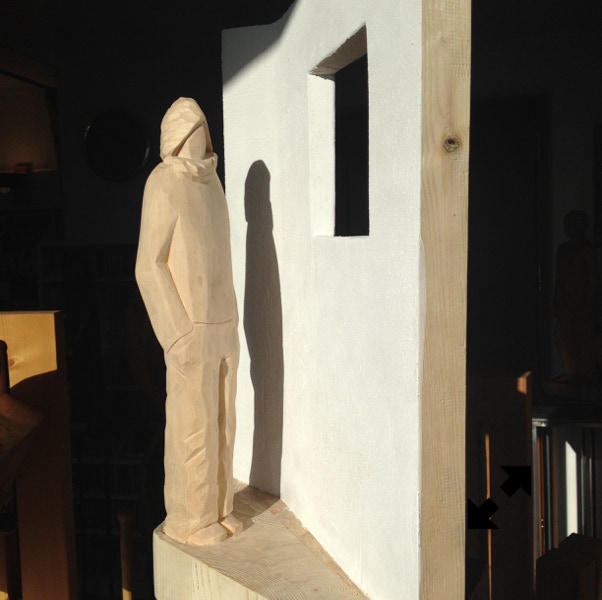 Il legno è il materiale che più mi stimola, ma amo usare anche altre tecniche come il gesso o il cemento. Attraverso la materia cerco un ponte, il dialogo tra i due modi di fare arte, nel tentativo di rendere, appunto, tangibile l’impalpabile.”