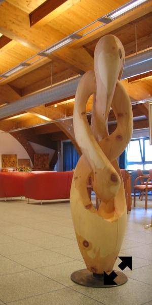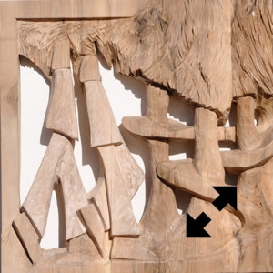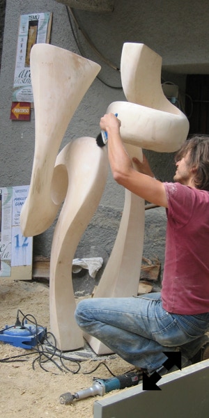 Il legno è il materiale che più mi stimola, ma amo usare anche altre tecniche come il gesso o il cemento. Attraverso la materia cerco un ponte, il dialogo tra i due modi di fare arte, nel tentativo di rendere, appunto, tangibile l’impalpabile.”