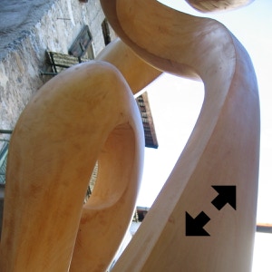 ”La scultura mi aiuta a concretizzare nella forma il pensiero musicale. Nelle mie opere cerco la relazione tra i due linguaggi, reinterpretando le regole dell’armonia musicale nelle forme che ricerco nel legno. Una sinergia che riesce a stabilire un dialogo forte tra spazio e musica.