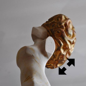 Il legno è il materiale che più mi stimola, ma amo usare anche altre tecniche come il gesso o il cemento. Attraverso la materia cerco un ponte, il dialogo tra i due modi di fare arte, nel tentativo di rendere, appunto, tangibile l’impalpabile.”